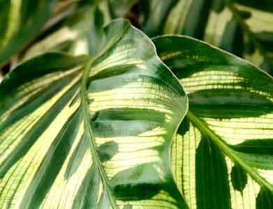 추위에 약해 실내에서 키우기 적합한 칼라테아는 잎의 무늬가 매우 독특합니다. 공기 정화 능력도 있으며 종류에 따라서 색도 다양해서 잎 만으로도 화려한 분위기를 낼 수 있습니다. 직사광선을 피해 반그늘에 두고 겨울에는 16도 이상의 실내에 두어야 합니다. 진한 녹색 바탕에 연한 색을 붓으로 그린 듯한 칼라테아 마코이아나와 넓은 잎의 칼라테아 오르비폴리아가 대표적입니다.