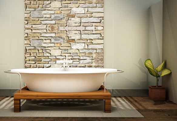 거실, 방의 한쪽 벽면에 벽돌이나 돌이 그대로 노출되게 합니다. 또 욕실의 한 면을 거친 느낌의 천연 소재 돌이 노출되도록 디자인합니다. 매끈하게 다듬은 것과는 또 다른 새로운 아름다움을 느낄 수 있습니다. 진흙이나 점토로 된 벽을 꾸며 볼 수도 있습니다.